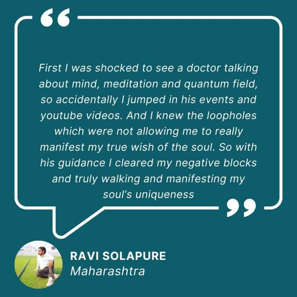 I have worked with great minds to learn medical science, neuroscience, Quantum physics etc. Also I stayed in many ashrams to deeply understand meditation, Mind and power of Consciousness . In my years of practice, I have realized that Our consciousness and Mind when used with Quantum fields can create miracles… Hence quantum physics and spiritual practices are more interconnected than we realize.